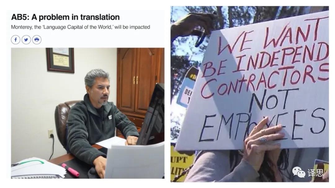 我認(rèn)識(shí)的一位在舊金山灣區(qū)的自由譯員,去年跟他談起AB5,一臉無(wú)所謂。上月看他朋友圈,哀嘆失業(yè)了。原來(lái)是,元旦過后沒幾天,就收到了經(jīng)常給他項(xiàng)目的翻譯公司函件,通知不再安排項(xiàng)目給他做了,除非他注冊(cè)公司并以公司名義接項(xiàng)目。對(duì)于他來(lái)說,即使要注冊(cè)公司,也需要時(shí)間并長(zhǎng)期增加負(fù)擔(dān)。據(jù)說有數(shù)十萬(wàn)的加州譯員受到這個(gè)法令影響。