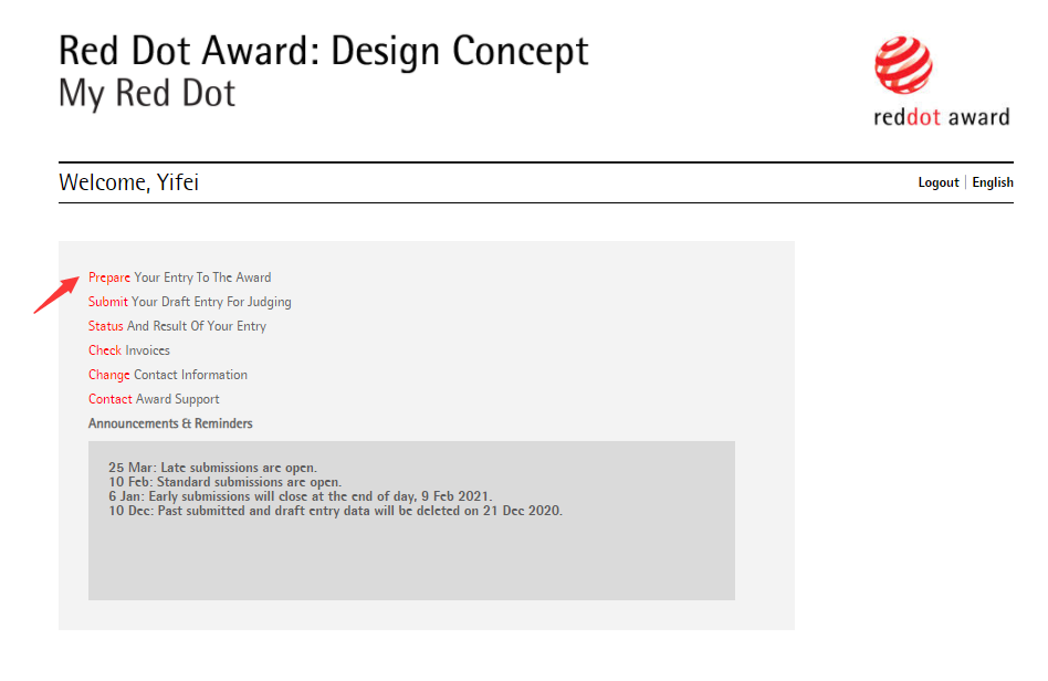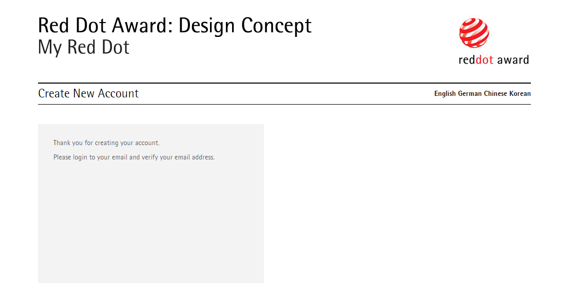 登錄官網(wǎng),選擇“My Red Dot – Design Concept”,進入注冊頁面,選擇“Create New Account”