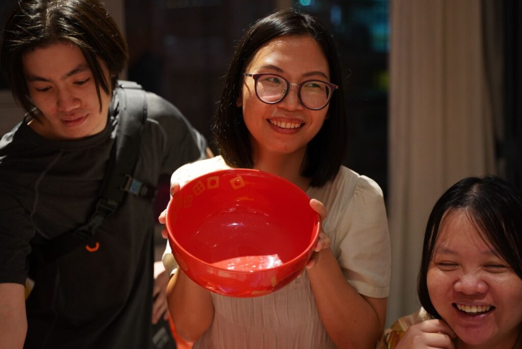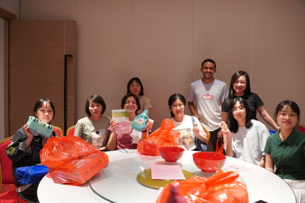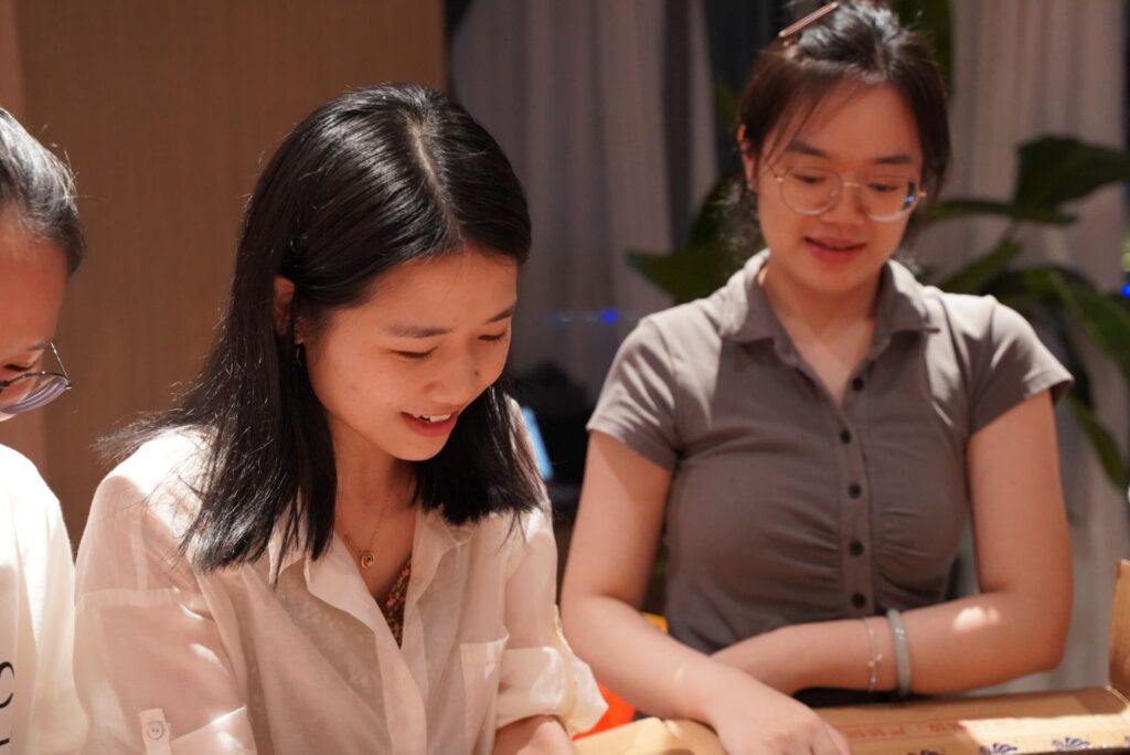 After a good meal with what seemed a non-stop flow of traditional Fujianese and Cantonese food, paired with some Spanish beer and red wine, the highlight of the Mid-Autumn Festival party came, the traditional dice game of Xiamen and neighboring cities: Bobing (博餅)! The clicking sound of dies rolling in the bowl to see who got the top prizes, along with everyone’s cheers and laughter made the end of the night a certainly memorable one. The Bobing activity made everyone forget their usual busyness for a while and enjoy a moment’s happiness.