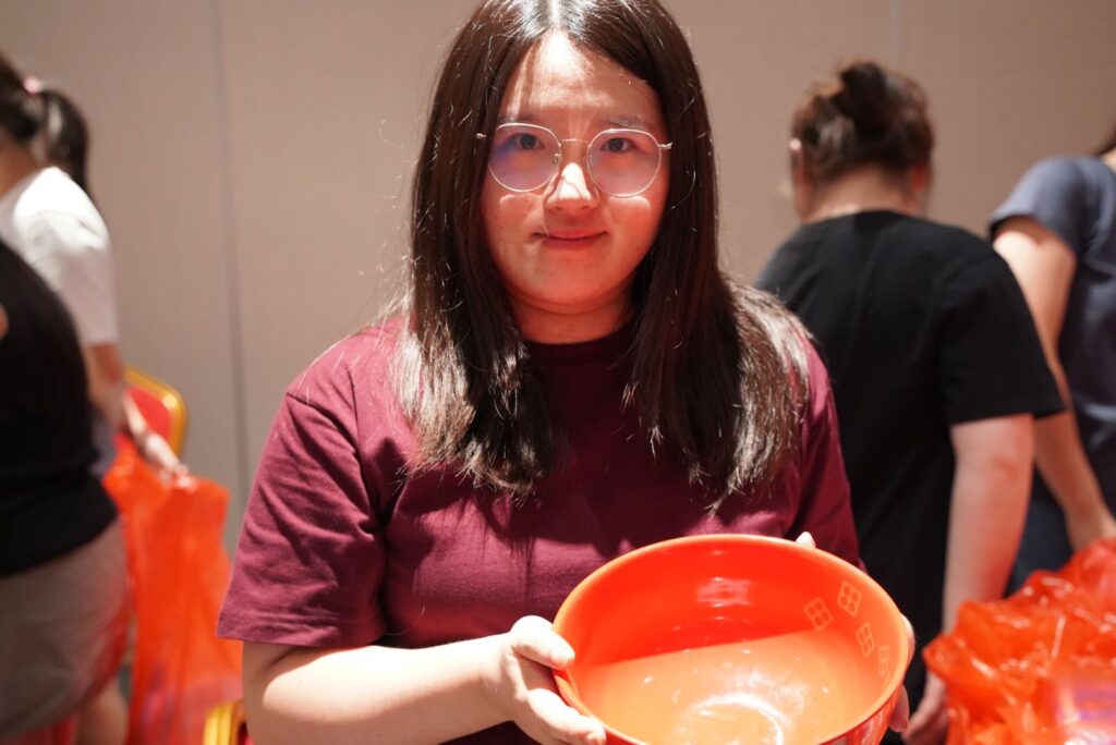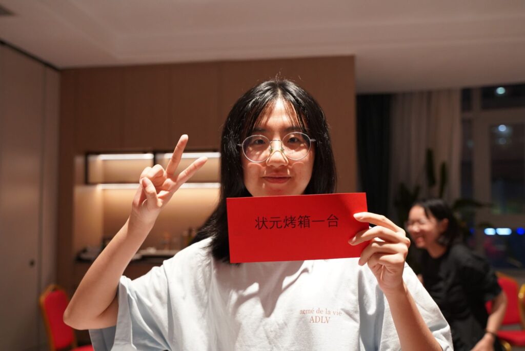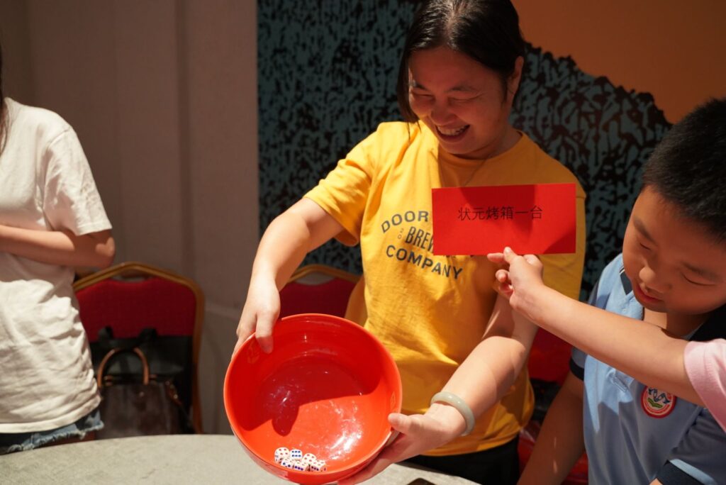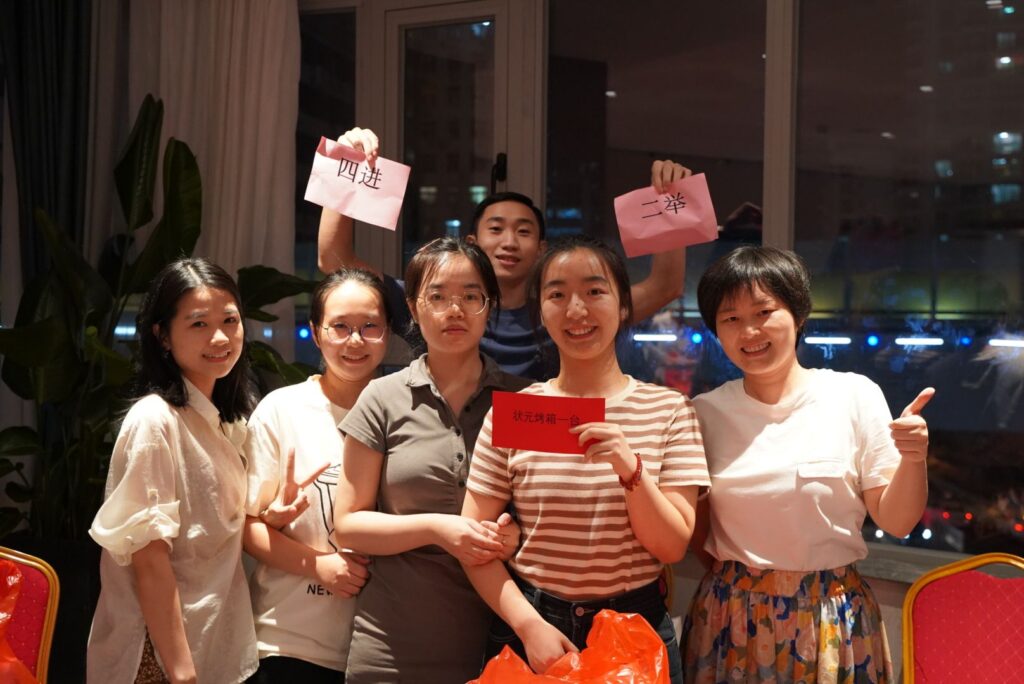 酒足飯飽之后,中秋活動(dòng)的重頭戲來了—閩南特色游戲–博餅!隨著篩子落入紅色大碗中,清脆的擲篩子聲此起彼伏,就著大家的歡呼和笑聲,讓整個(gè)氣氛達(dá)到了高潮。博餅活動(dòng)讓大家暫時(shí)忘卻了平日的忙碌,盡情享受片刻歡樂。今年的狀元花落誰家呢?就是這幾位啦!大家趕緊抱抱他們沾沾好運(yùn)氣吧?。?!
