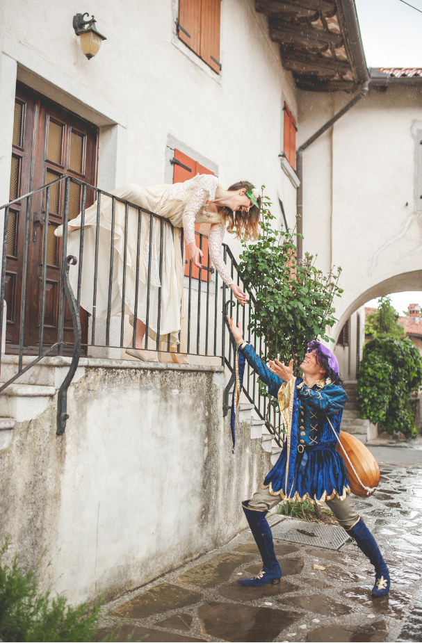 你有注意過優(yōu)秀的演員是如何像使用聲音一樣頻繁地使用他們的身體嗎?肢體語言是為口頭語言增添色彩和質(zhì)感的畫筆。莎士比亞不僅僅是一位語言大師,他的戲劇還提供了一個(gè)讓口頭語言和肢體語言完美和諧地跳華爾茲的舞臺(tái)。朱麗葉不僅僅會(huì)說:“羅密歐,你為何而來?”她伸出的雙臂和她的目光也會(huì)呼喊。
